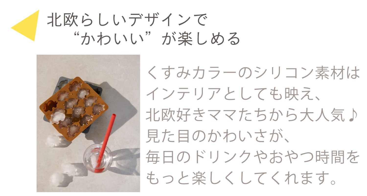 LIEWOODらしいキュートなモチーフの氷が作れるシリコントレイは、子どもも大人もワクワクするデザインです。
