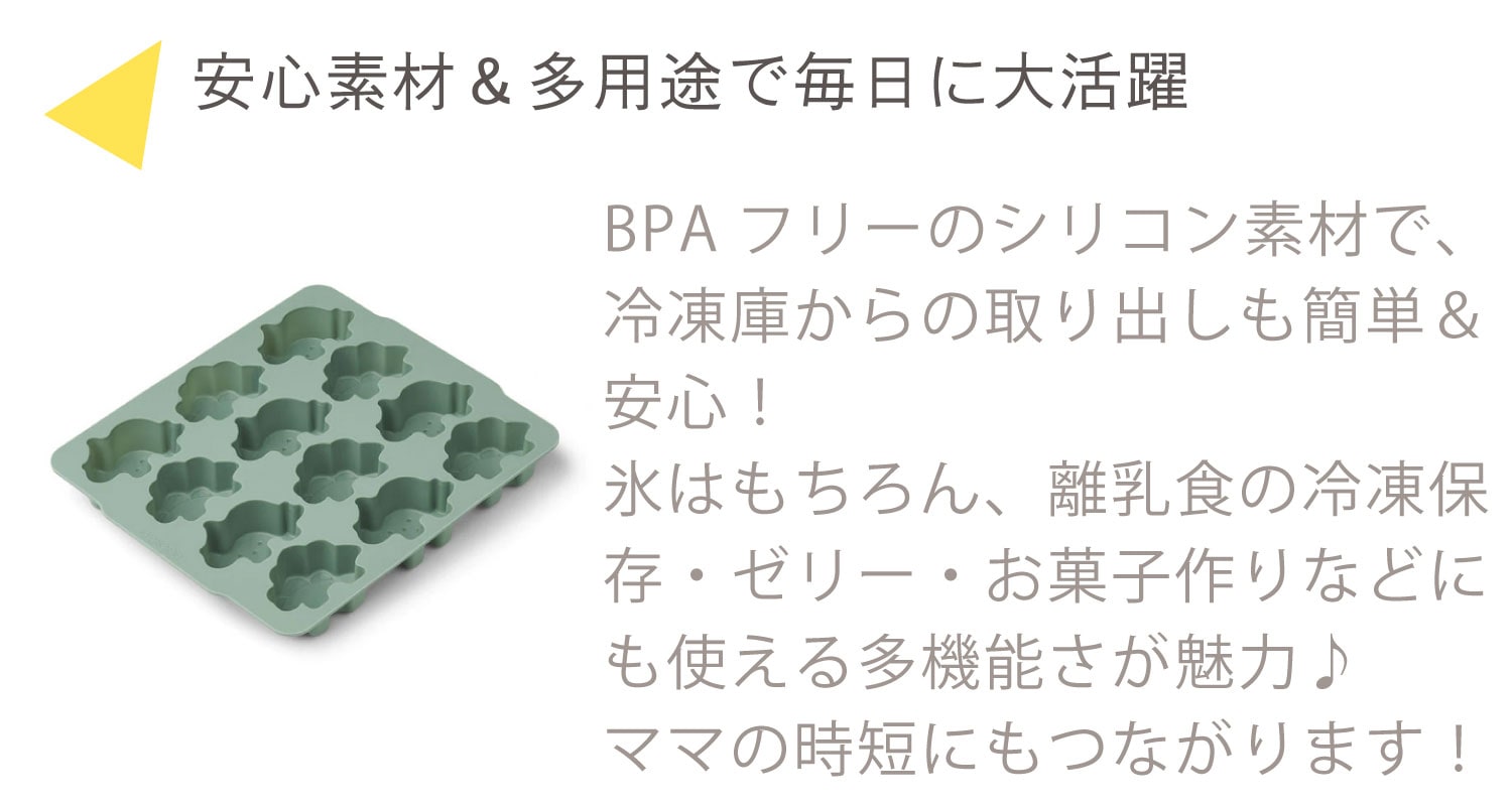 素材は柔らかく扱いやすいBPAフリーのシリコン製で、冷凍庫でも取り出しやすく、割れたり型崩れしたりしにくいのが特長。